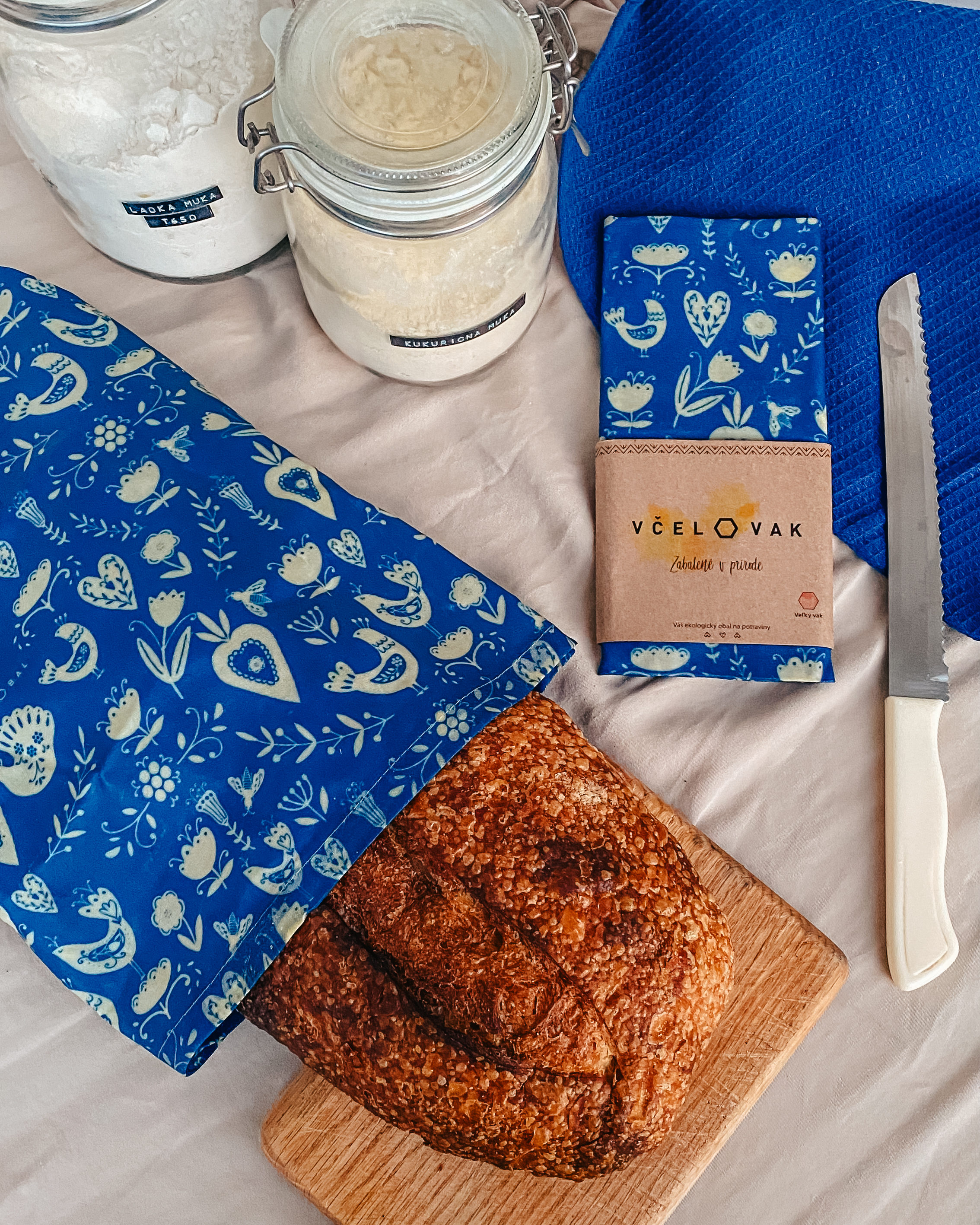 Plastic foils are usually used once and then end up in a landfill, or in an incinerator. Their lifespan is often very short, recycling is almost impossible. A plastic bag usually decomposes in nature in about 25 years. In addition, they do not allow pastries to breathe, which means mold has a greater chance. Waxed napkins are 100% natural, do not release any harmful chemicals, and by using them, we minimize the amount of unnecessary plastic. The packaging is reusable and does not create waste even after the end of its useful life. Beeswax and resin have antifungal and antibacterial properties. In addition, by purchasing bee packages, you support local production and organic beekeeping in Slovakia.